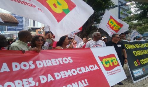 Trabalhadores de diversas categorias, estudantes e militantes de várias entidades dos movimentos sociais promoveram um grande protesto nesta terça-feira (16), em defesa do emprego e dos direitos, em frente à Casa do Comércio, na avenida Tancredo Neves, importante centro financeiro de Salvador. Depois, o movimento caminhou até a Federação das Indústrias da Bahia, FIEB, chamando atenção da sociedade.
