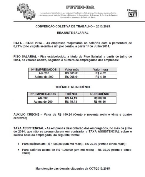 Os metalúrgicos podem comemorar. O reajuste de 8,71%, retroativo a 1º de julho, beneficia toda a categoria. O acordo foi fechado ano passado e vale até 2015. Além de evitar perdas, com a instabilidade da economia, o acordo garante ganhos econômicos nesse período.