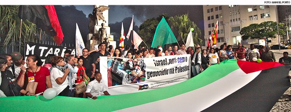 Diversas entidades sindicais e de movimentos sociais da Bahia se reuniram no final da tarde desta quarta-feira (30/7), na praça da Piedade, em um ato em defesa do povo palestino, que tem sofrido duros ataques por parte de Israel, na Faixa de Gaza.