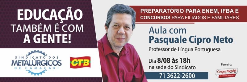 O Sindicato dos Metalúrgicos de Camaçari completou nesta quarta-feira 13 anos de fundação. Mas o mês será de muitas comemorações, começando com a grande e tão aguardada aula com o renomado professor Pasquale Cipro Neto, na sexta-feira (8), às 18h.