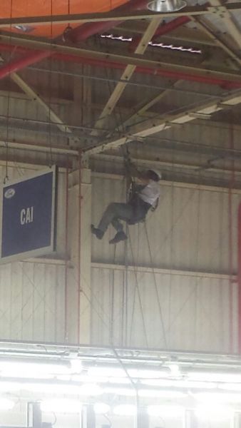 O registro fotográfico mostra que o rapel foi feito para consertar uma lona presa ao teto, para evitar as enchentes constantes causadas pela chuva no prédio da montagem, como em todo complexo Ford, podendo resultar em um grave acidente até para os operadores, que continuaram a executar as atividades na linha de produção durante todo o conserto nas instalações.