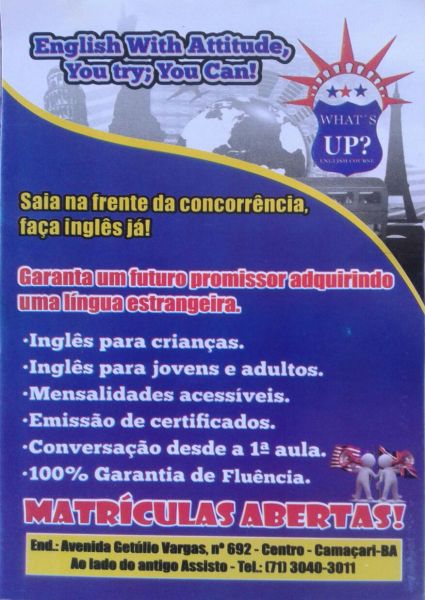 A Federação dos Metalúrgicos da Bahia firmou mais um convênio na área de idiomas. Agora, os sindicalizados podem contar as aulas do curso "What's UP?". Aproveite. Veja abaixo.