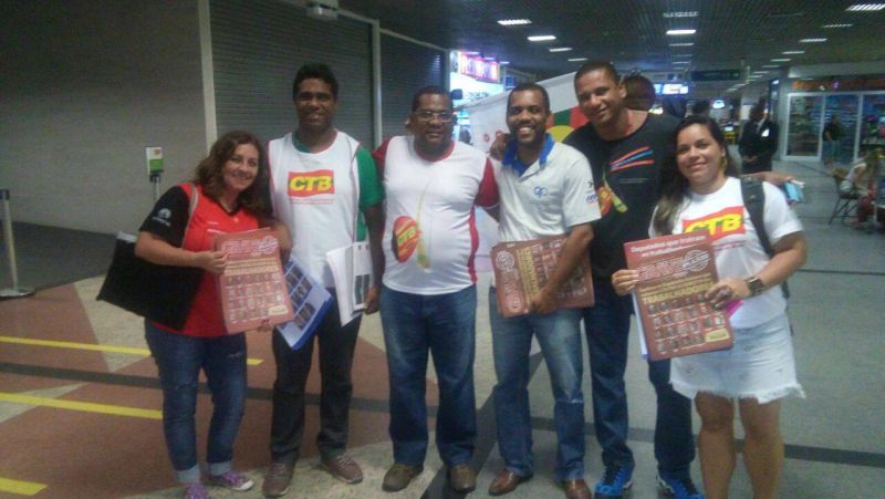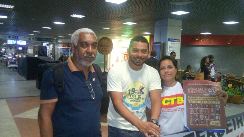 Dirigentes da CTB e sindicatos filiados se reuniram no Aeroporto Internacional Luís Eduardo Magalhães, em Salvador, para protestar contra o PL 4.330. A mobilização começou por volta das 5h desta quarta-feira e durou cerca de duas horas. O objetivo foi fazer um corpo a corpo com os parlamentares para sensibiliza-los para os prejuízos do projeto, que já foi aprovado pelos deputados no dia 8. Mas ainda falta a análise de sugestões de alteração (emendas) no texto original. A previsão é que a Câmara conclua a votação nesta quarta.