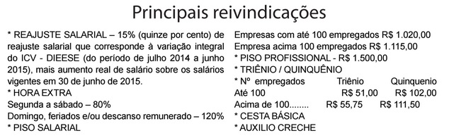 Na última reunião, o sindicato patronal propôs reajuste salarial abaixo da inflação e dividido em duas vezes (4% este mês e 4% em janeiro de 2015), além de 5% de reajuste salarial referente a 2016. A proposta, claro, foi rejeitada pelos metalúrgicos.
