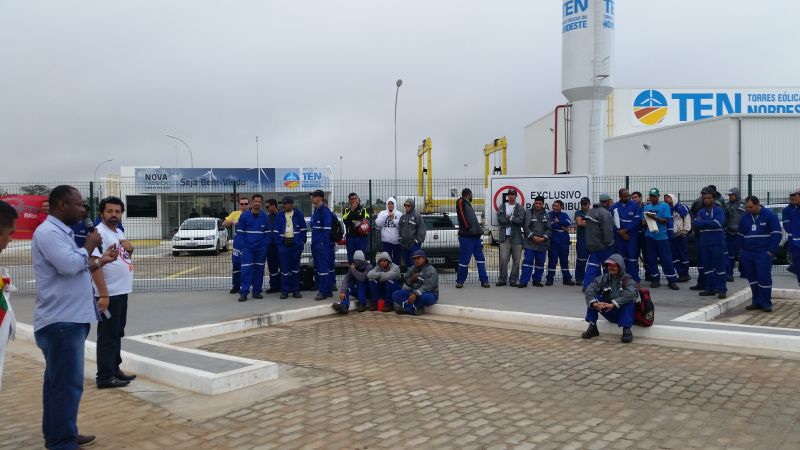 Os trabalhadores participaram em massa da assembleia realizada pelo Sindicato dos Metalúrgicos da Bahia, no último dia 9, na porta da TEN (Torres Eólicas do Nordeste), em Jacobina.