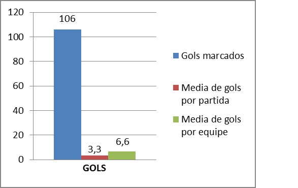 * Total gols Marcados: 106 em 32 jogos. Média de 3,3 por partida.