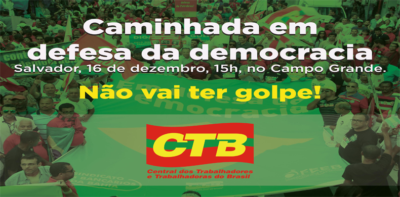 Contra o impeachment, em defesa da democracia e de mais direitos, não ao ajuste fiscal e fora Cunha estas são as bandeiras que os movimentos sociais, entre eles a CTB Bahia, levarão para ruas no dia 16 de dezembro.