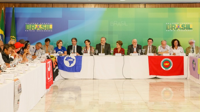 Entidades e Movimentos Sociais da Frente Brasil Popular, artistas e outras personalidades foram recebidos hoje (17) pela presidenta Dilma, em Brasília, para mais uma manifestação de apoio à continuidade do seu mandato. Durante o encontro, o grupo também apresentou e discutiu propostas para retomar o desenvolvimento do País.