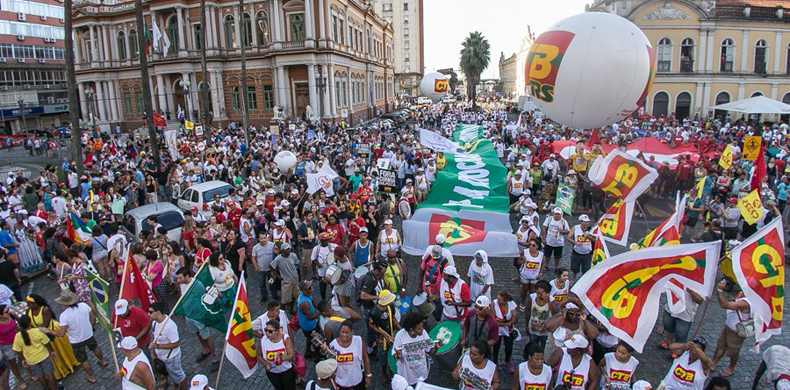 A marcha de abertura do evento, na terça-feira (19), reuniu 10 mil pessoas e destacou a luta em defesa da democracia e contra qualquer tentativa de golpe no país, com muitos gritos de “Fora, Cunha!”, em referência ao presidente da Câmara dos Deputados, alvo de investigação e denúncias de corrupção.
