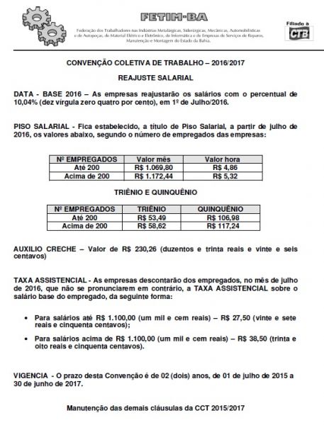 Mesmo num momento de grave crise na economia, os metalúrgicos da Bahia conseguiram avançar nos ganhos financeiros. O acordo fechado entre Sindicato e empresas, com duração de dois anos (2051/2016) protegeu os trabalhadores das dificuldades do mercado e da economia no Brasil.