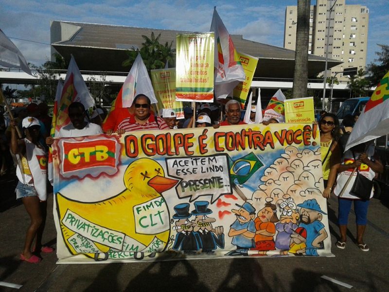 A caminhada saiu do Campo Grande e seguiu até o Farol da Barra. “Estamos nas ruas pedindo o fim imediato deste governo golpista. Mas também vamos defender bandeiras importantes contra as medidas nefastas adotadas pelo governo golpista, como a redução de programas sociais, a exemplo do bolsa família e o Minha Casa, Minha vida; a proposta de redução dos investimentos na educação e saúde, além da reforma trabalhista e da Previdência Social”, ressaltou o presidente da CTB Bahia, Aurino Pedreira.
