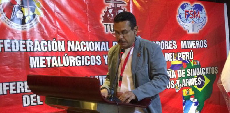 O metalúrgico da Bahia Francisco Sousa, que é secretário-geral da UIS Metal (União Internacional dos Sindicatos de Metalurgia e Mineração), participou do evento, parte do 14º Congresso Nacional Ordinário da Federação Nacional de Trabalhadores Mineiros Metalúrgicos e Siderúrgicos daquela país (FNTMMSP), filiada à Confederação Geral dos Trabalhadores do Peru (CGTP).