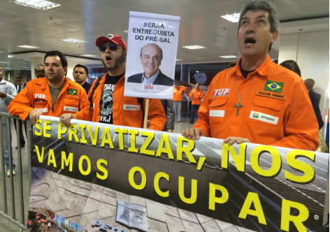 Petroleiros protestaram contra a aprovação da proposta entreguista Petroleiros protestaram contra a aprovação da proposta entreguista