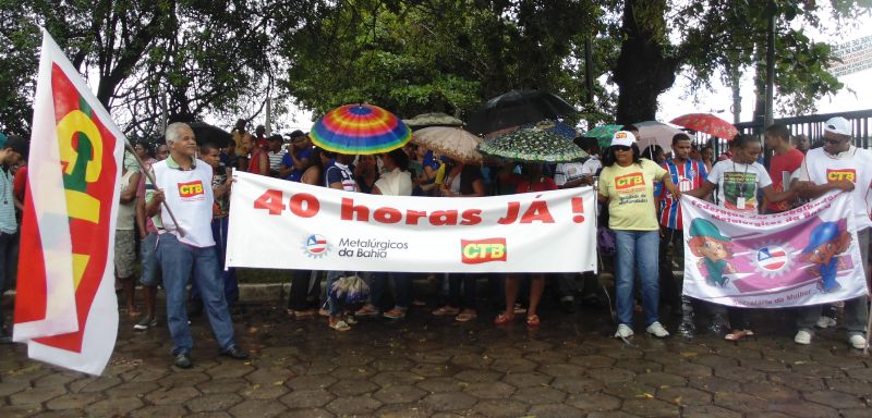 Nem a forte chuva impediu a grande manifestação que aconteceu no começo da manhã desta quinta-feira (11), em frente à sede da Papaiz. Os trabalhadores participaram de uma assembleia organizada pelo Sindicato dos Metalúrgicos da Bahia, com apoio da CTB. O movimento faz parte da mobilização nacional convocada pelas centrais sindicais, com o objetivo de chamar atenção para uma série de reivindicações, como redução da jornada para 40 horas semanais sem redução de salário, fim do fator previdenciário etc.