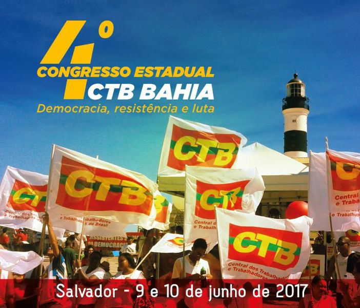 A Central dos Trabalhadores e Trabalhadoras do Brasil – Regional Bahia está convocando os sindicatos para o seu 4º Congresso Estadual, que será realizado nos dias 9 e 10 de junho de 2017, no Hotel Sol Bahia Express, no bairro de Patamares, em Salvador. O encontro discutirá os rumos da Central nos próximos anos e elegerá a nova direção da CTB Bahia.