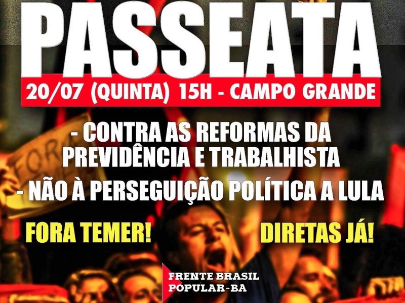 A CTB Bahia junto com a Frente Brasil Popular e as demais centrais sindicais convocam toda a população para um ato contra o estado de exceção no país e pelo direito do ex-presidente Lula ser candidato em 2018.