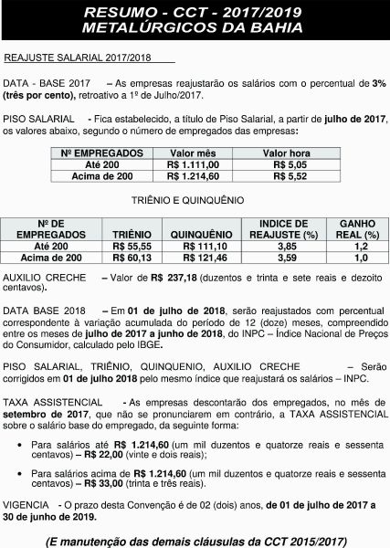 O acordo, que tem duração de dois anos (2017/2018), é fundamental para assegurar durante todo esse período os direitos e benefícios previstos na Convenção Coletiva, num momento de grande dificuldade enfrentado pela classe trabalhadora no Brasil.