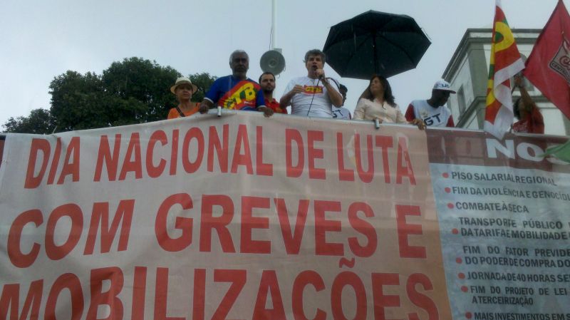 Em Salvador, o ponto alto do dia nacional de luta promovido pelas centrais sindicais, na quinta-feira (11), foi a passeata no centro da cidade, que reuniu milhares de trabalhadores de diversas categorias, como metalúrgicos, bancários, comerciários etc. Com faixas, cartazes e muita disposição, a manifestação saiu do Campo Grande em direção à Praça Municipal, onde ficam a Prefeitura e a Câmara de Vereadores.