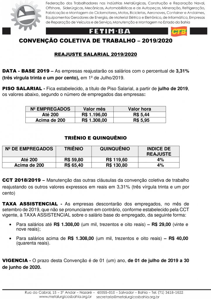 Abaixo RESUMO da Convenção Coletiva/2019: