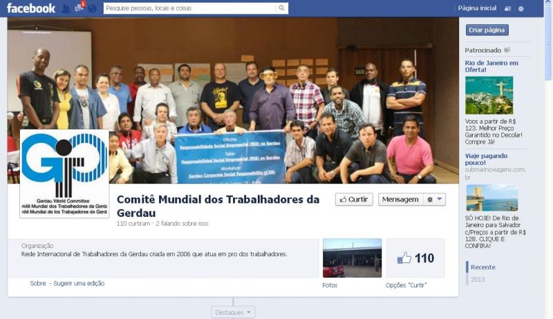 Para se conectar clique aqui e acesse o perfil “Comitê Mundial dos Trabalhadores da Gerdau” no Facebook .