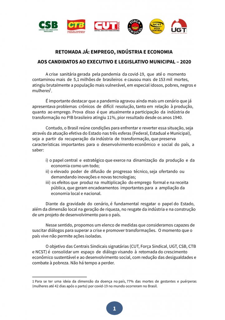 RETOMADA JÁ: EMPREGO, INDÚSTRIA E ECONOMIA
