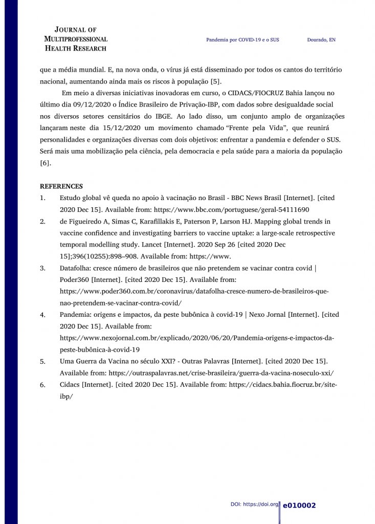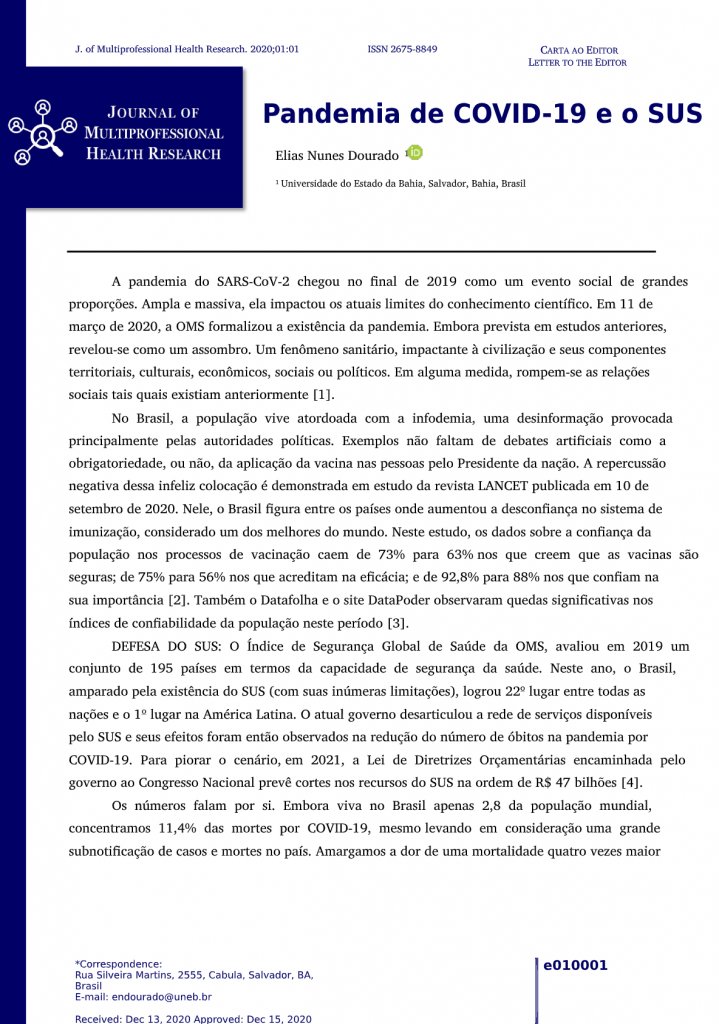 Artigo de Elias Nunes Dourado, Universidade do Estado da Bahia, Salvador, Bahia, Brasil.