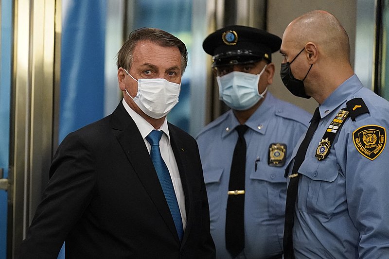 Bolsonaro foi obrigado a usar máscara nas dependências do prédio onde ocorre a Assembleia Geral - John Minchillo / POOL / AFP