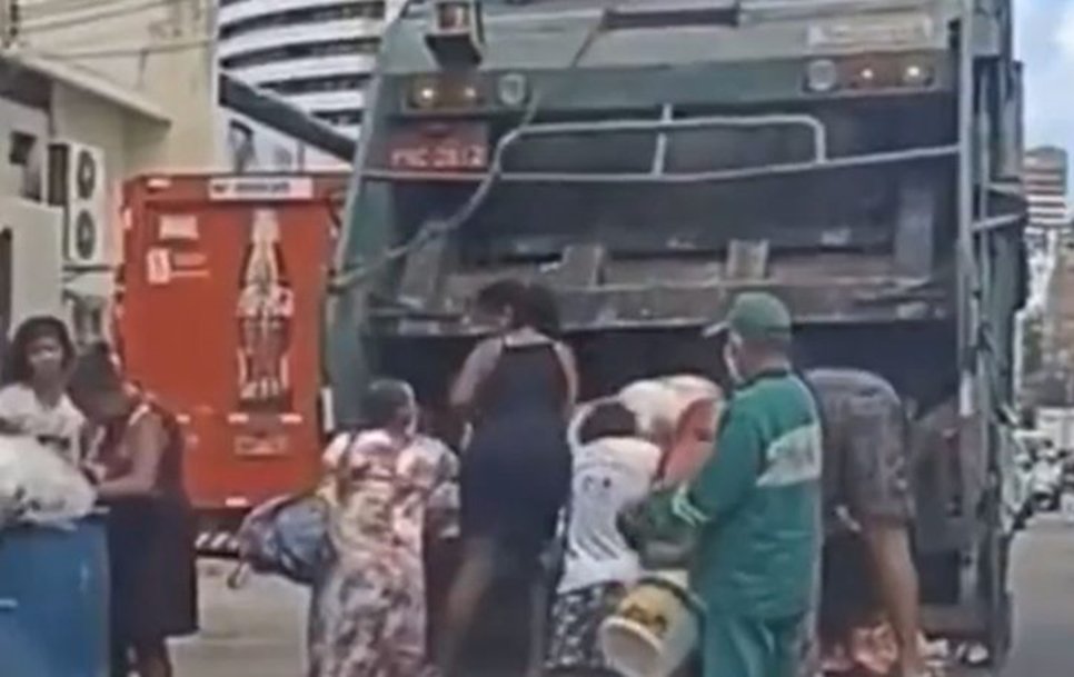 Pessoas revirando caminhão de lixo em busca de comida no final do ano passado. Foto: Reprodução