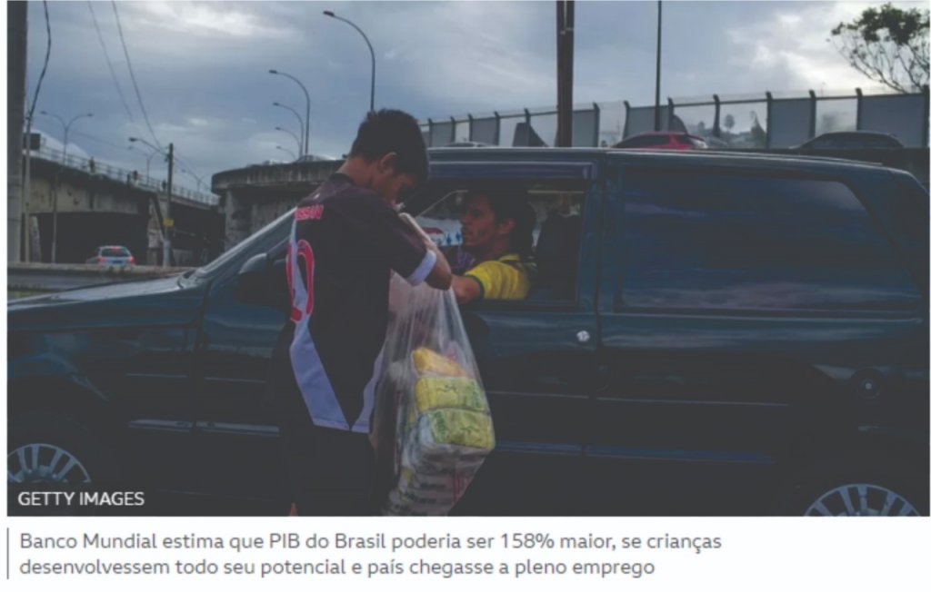 Uma criança brasileira nascida em 2019 deve alcançar em média apenas 60% do seu capital humano potencial ao completar 18 anos, calcula estudo inédito do Banco Mundial, ao qual a BBC News Brasil teve acesso.