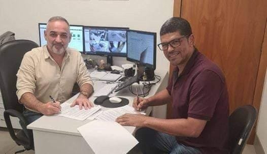 Silvio Comin (SINEC) e Marcos Souza (STIM) assinaram convenção coletiva.