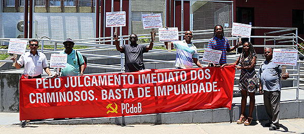 A primeira audiência do processo sobre o caso do assassinado do dirigente sindical Paulo Colombiano e da esposa, Catarina Galindo, aconteceu na manhã desta quarta-feira (23), no Fórum Criminal de Sussuarana, em Salvador. Pelo menos 16 testemunhas foram convocadas pelo Tribunal de Justiça da Bahia (TJ-BA) para darem seu depoimento sobre a morte do casal. Os familiares e amigos das vítimas estiveram no fórum para acompanhar de perto o primeiro dia das audições. Do lado de fora, manifestantes exibiam faixas e cartazes que pediam celeridade no julgamento do caso, em uma vigília que foi organizada pela CTB e PCdoB Bahia, além de outras entidades.