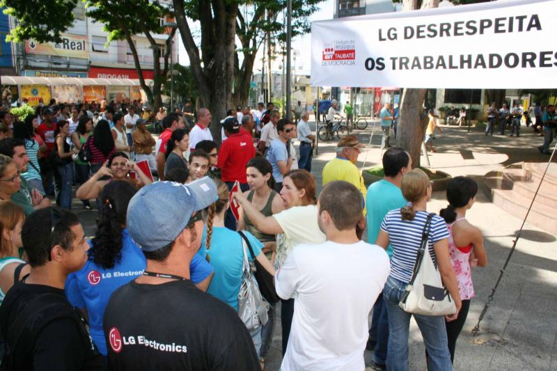 Nesta segunda-feira (dia 20), o Sindicato dos Metalúrgicos de Taubaté realizou uma assembleia na entrada do primeiro turno da fábrica da LG, para reverter a demissão de 2 colegas que foram desligados da empresa sem que o sindicato fosse previamente comunicado.