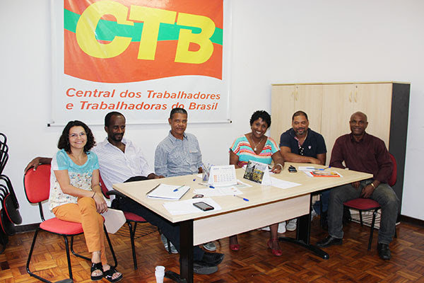 A reunião coordenada pela secretária de Igualdade Racial, Mônica Custódio contou com a presença de Gilberto Coelho de Santanz, secretário Estadual de Igualdade Racial da CTB-RJ e do Sindicato dos Trabalhadores nas Empresas de Saneamento Básico e Meio Ambiente do Rio de Janeiro e Região – Sintsama; Antonio Carlos Suzart- Sindicato dos COmerciários de Salvador (Sindcom); Everaldo Vieira, Sindicato dos Metalúrgicos de Camaçari; Silvio Pinheiro, secretário Estadual de Igualdade da CTB- BA; Nestor Dória, Sindicato dos Trabalhadores em Correios e Telégrafos de SP (Sintect) e a assessora Liliana Ferreira.