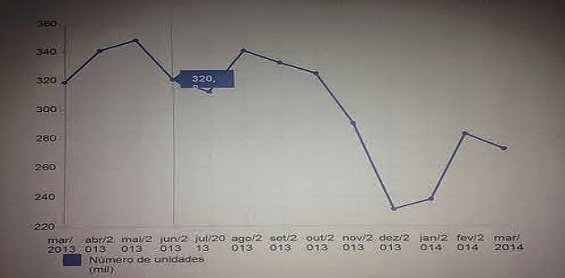 Confira a evolução na produção mensal de veículos entre 2013 e 2014: